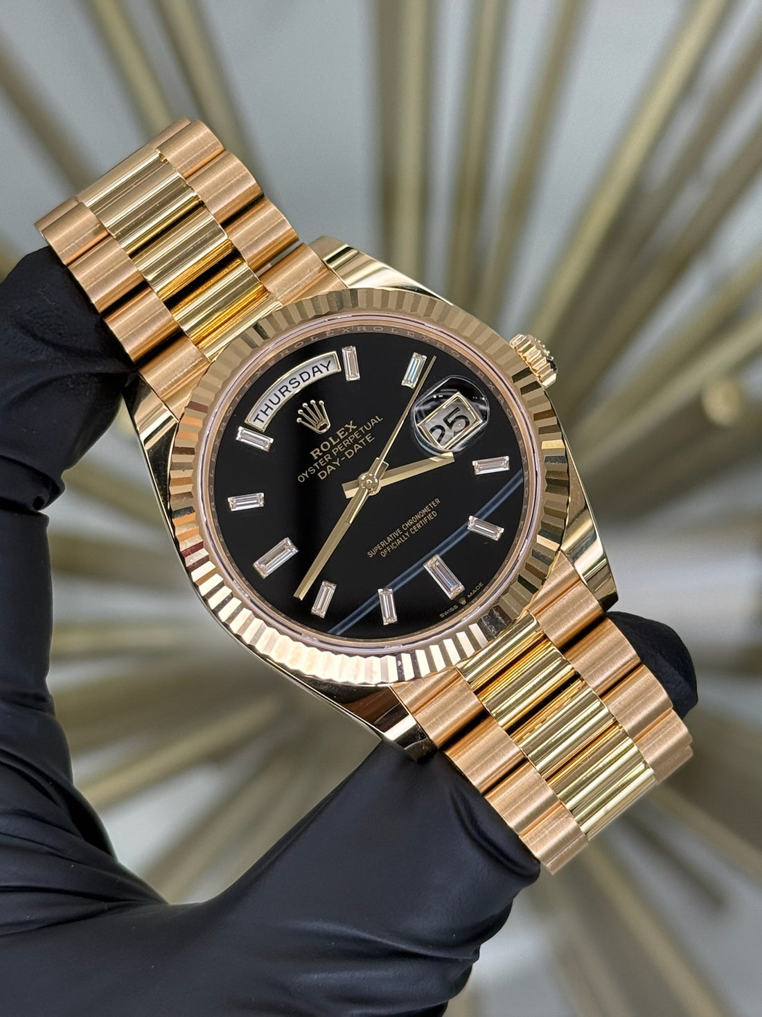 Rolex Day-Date Black Onyx Baguette Dial on President 228238 2025 Complete