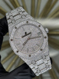 This remarkable Audemars Piguet Royal Oak, reference number 15500ST, is an epitome of luxury and elegance. Featuring a dazzling "Iceout" dial, bezel, and bracelet adorned with diamonds, this timepiece stands out with its exquisite craftsmanship. The case is made from stainless steel and measures 41mm, making it a substantial yet refined piece perfect for any formal occasion.