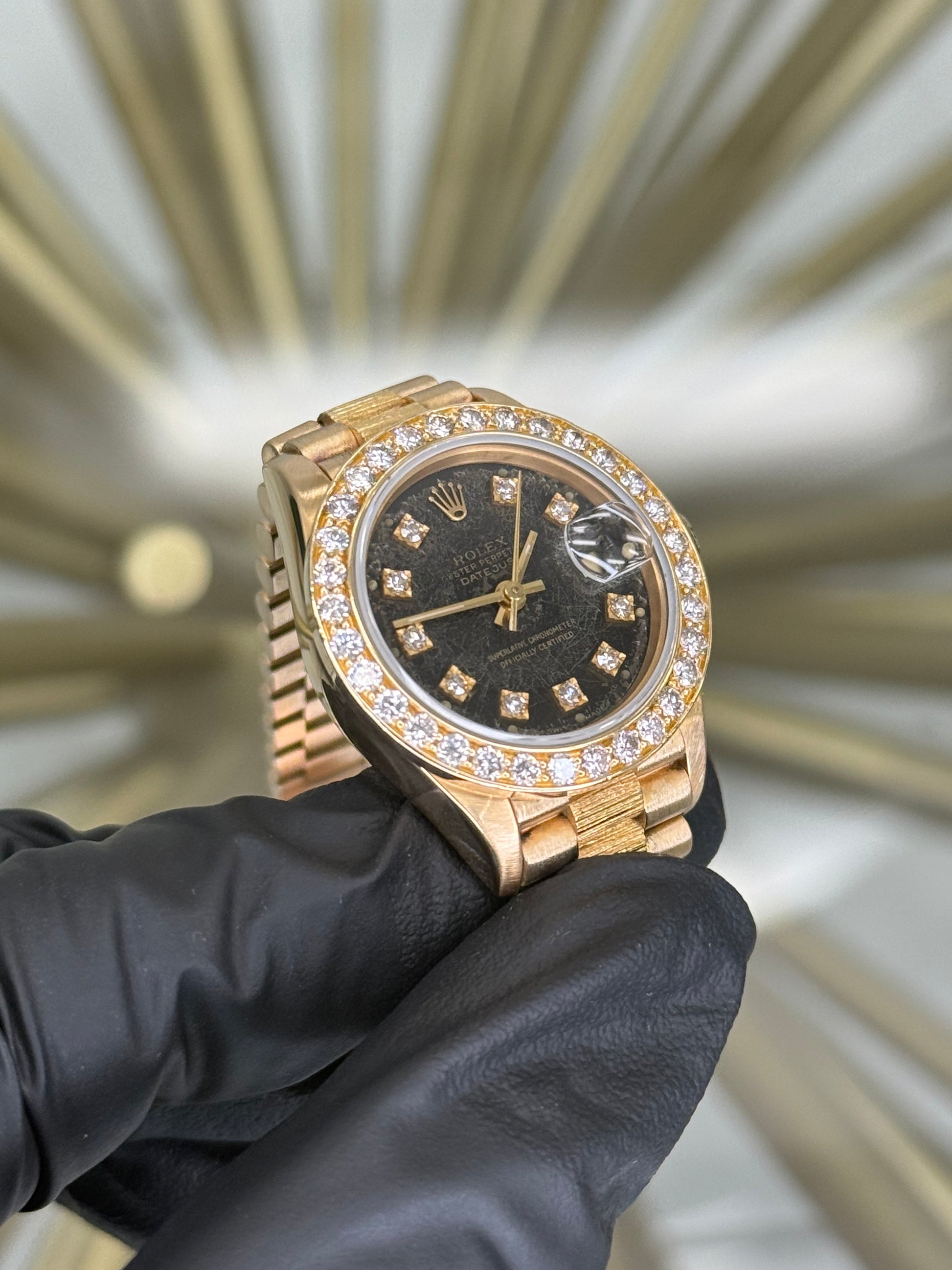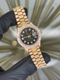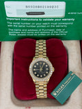 Rolex Datejust 26 Black Spider Dia Dial on Yellow Gold 69288 Open Date Complete