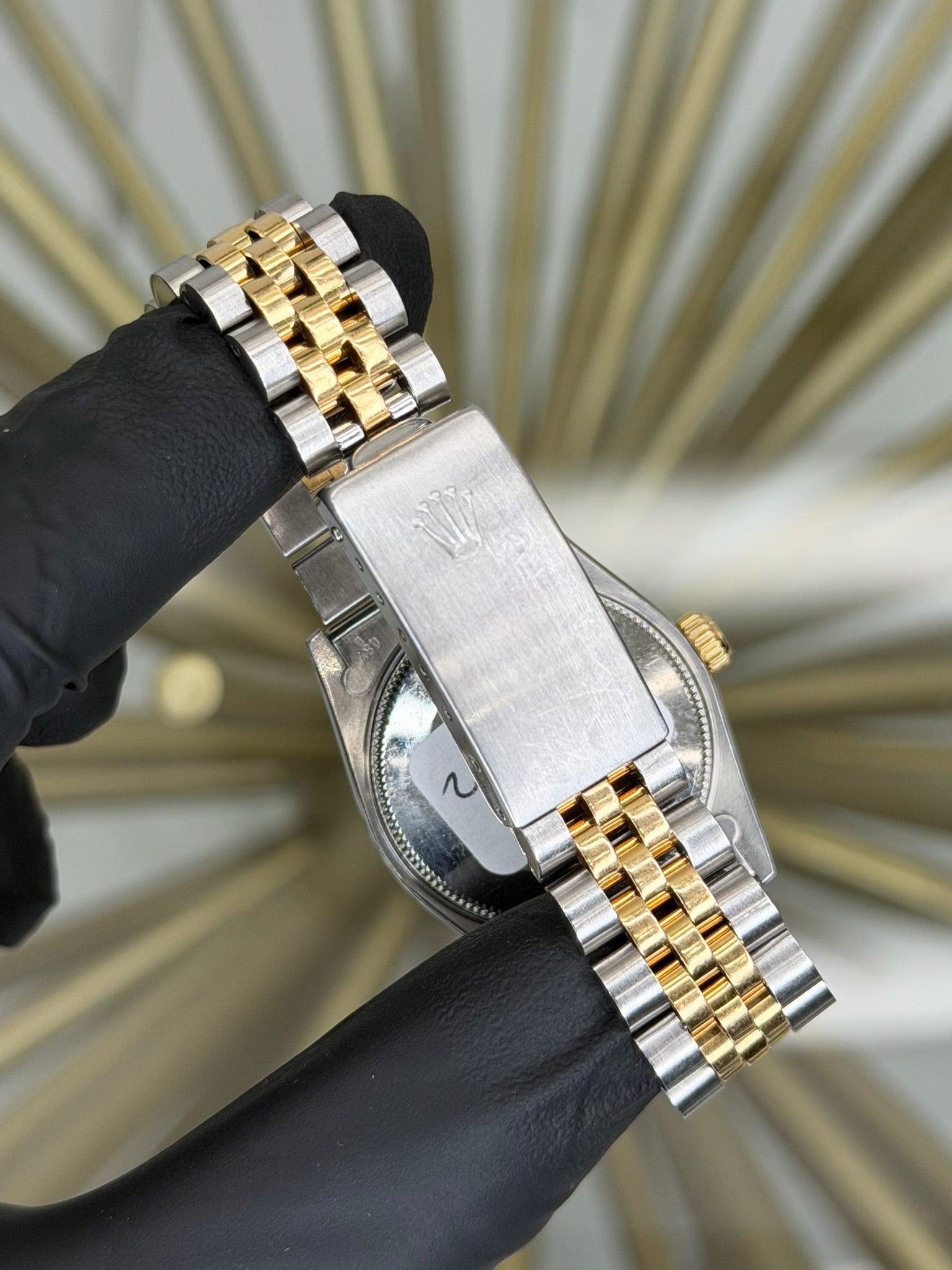 This elegant Rolex Datejust 31, reference number 68273, is a stunning example of luxury watchmaking. Combining stainless steel and yellow gold, it flaunts a classic fluted bezel and a white Roman dial that provides a touch of sophistication. The Jubilee bracelet adds to its timeless appeal, making it a versatile accessory suited for any event. The 31mm case size strikes the perfect balance between subtlety and style, embodying Rolex’s commitment to excellence.