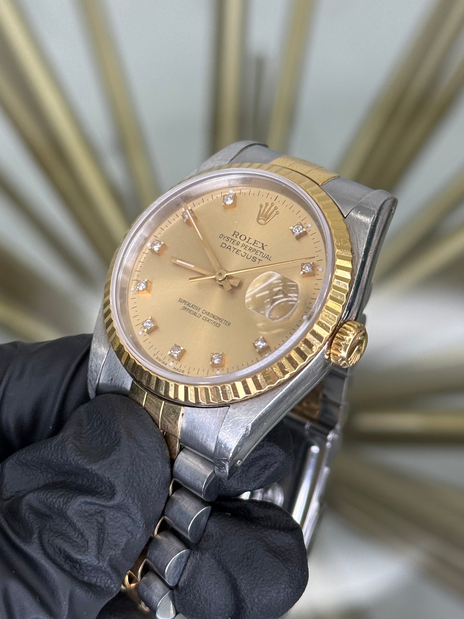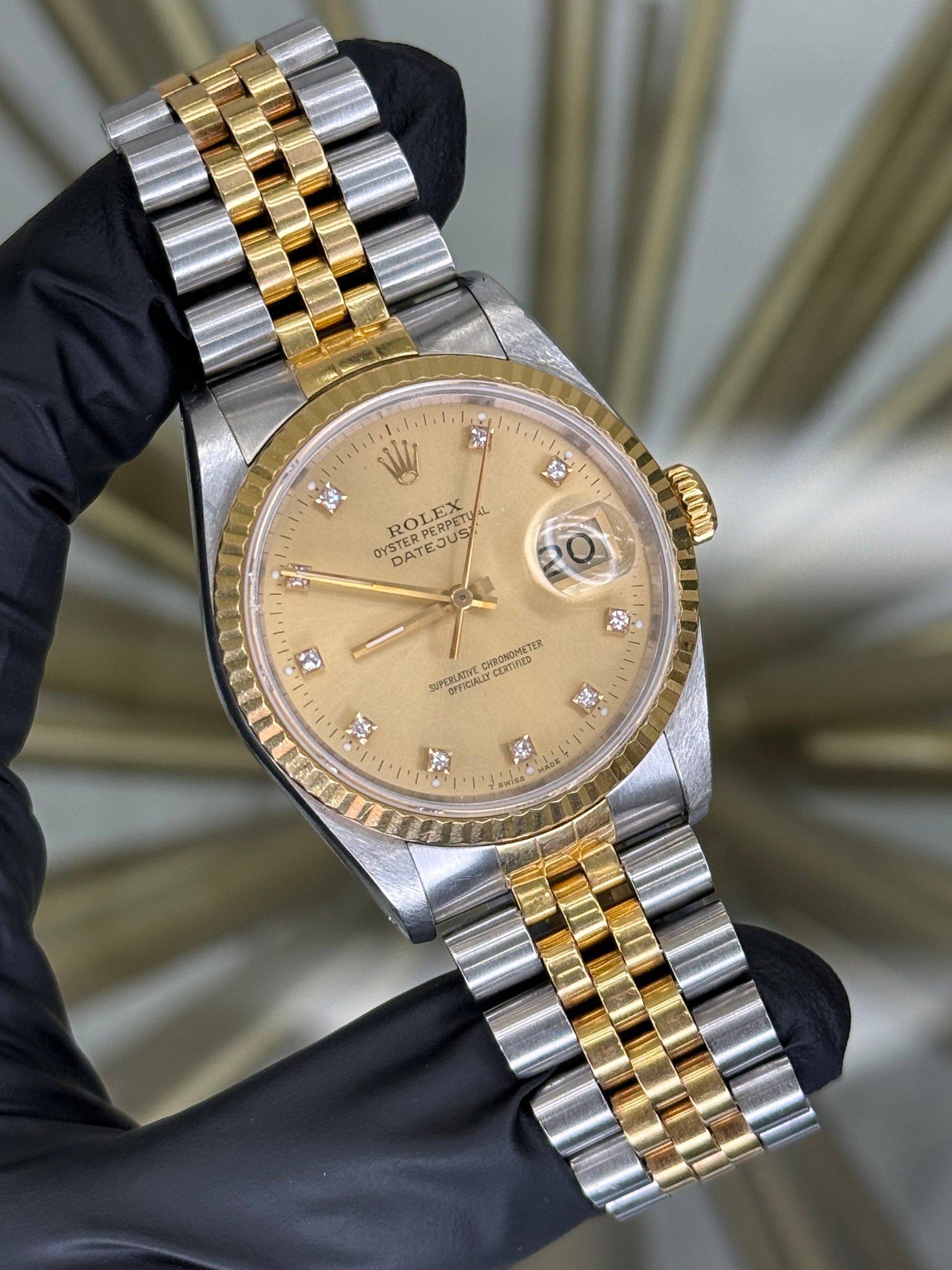 Rolex Datejust 36 Champagne Diamond Dial on Jubilee 16233
