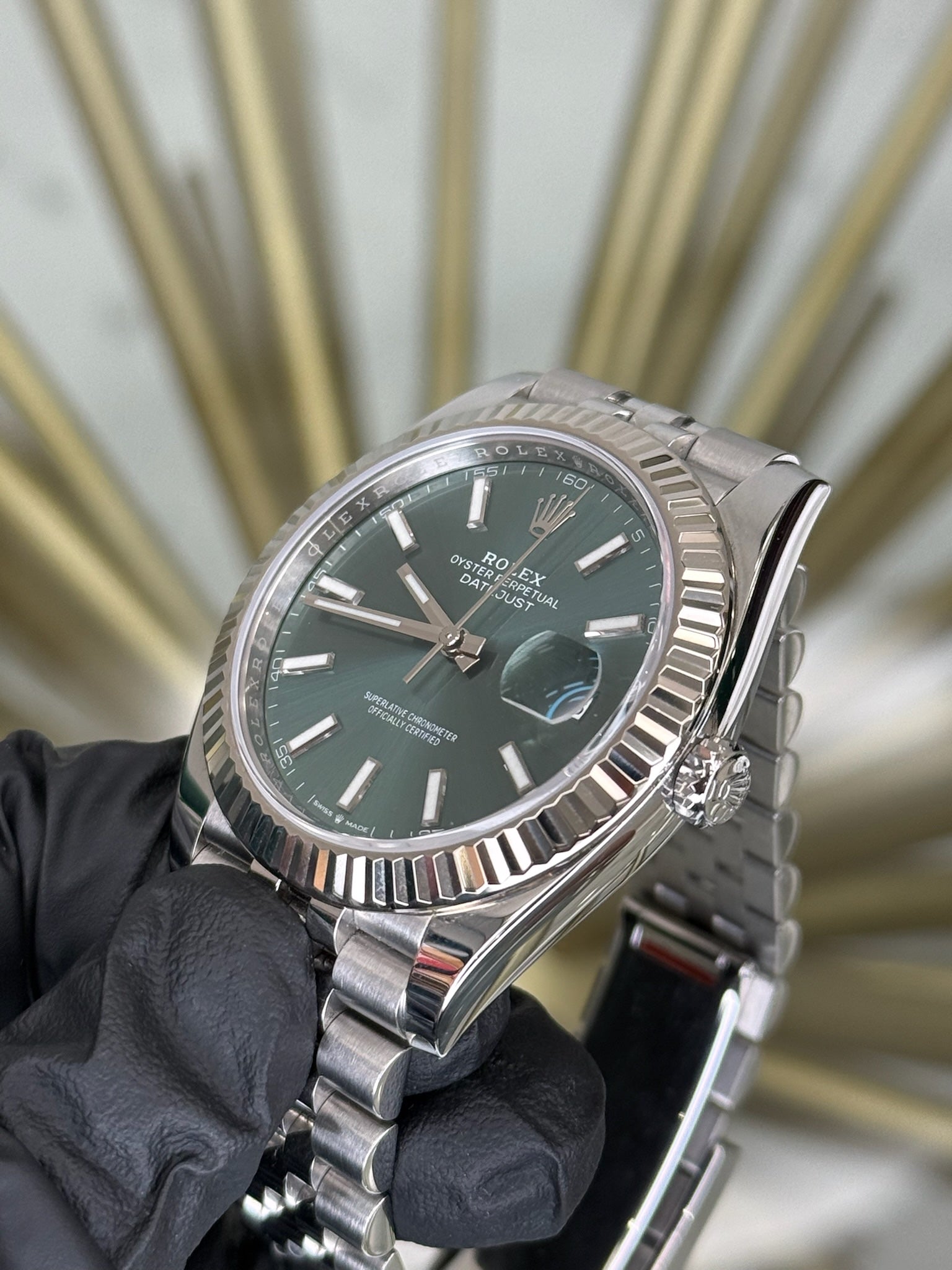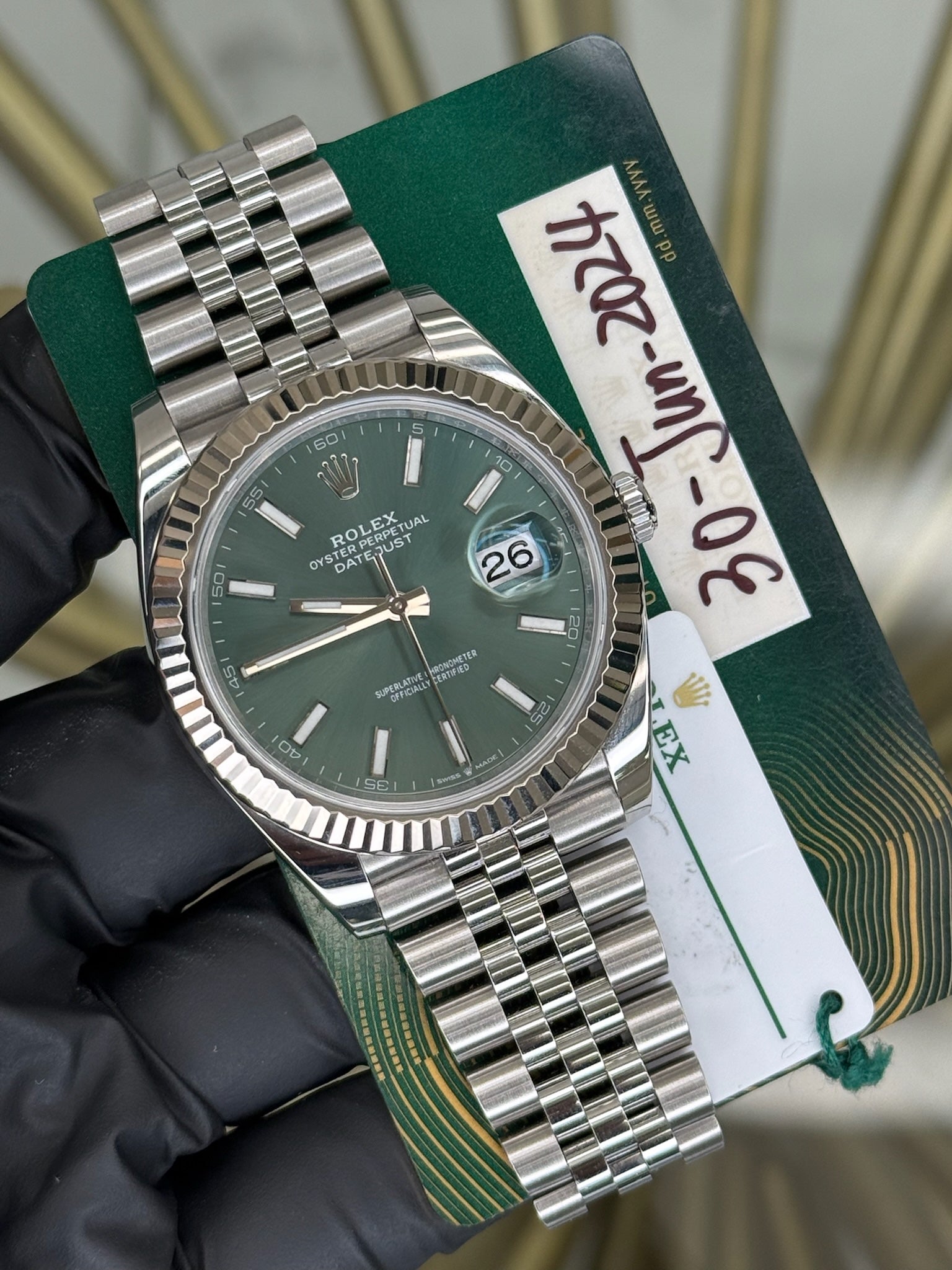 Rolex Datejust 41 Mint Green Index Dial on Jubilee 126334 2024 Card