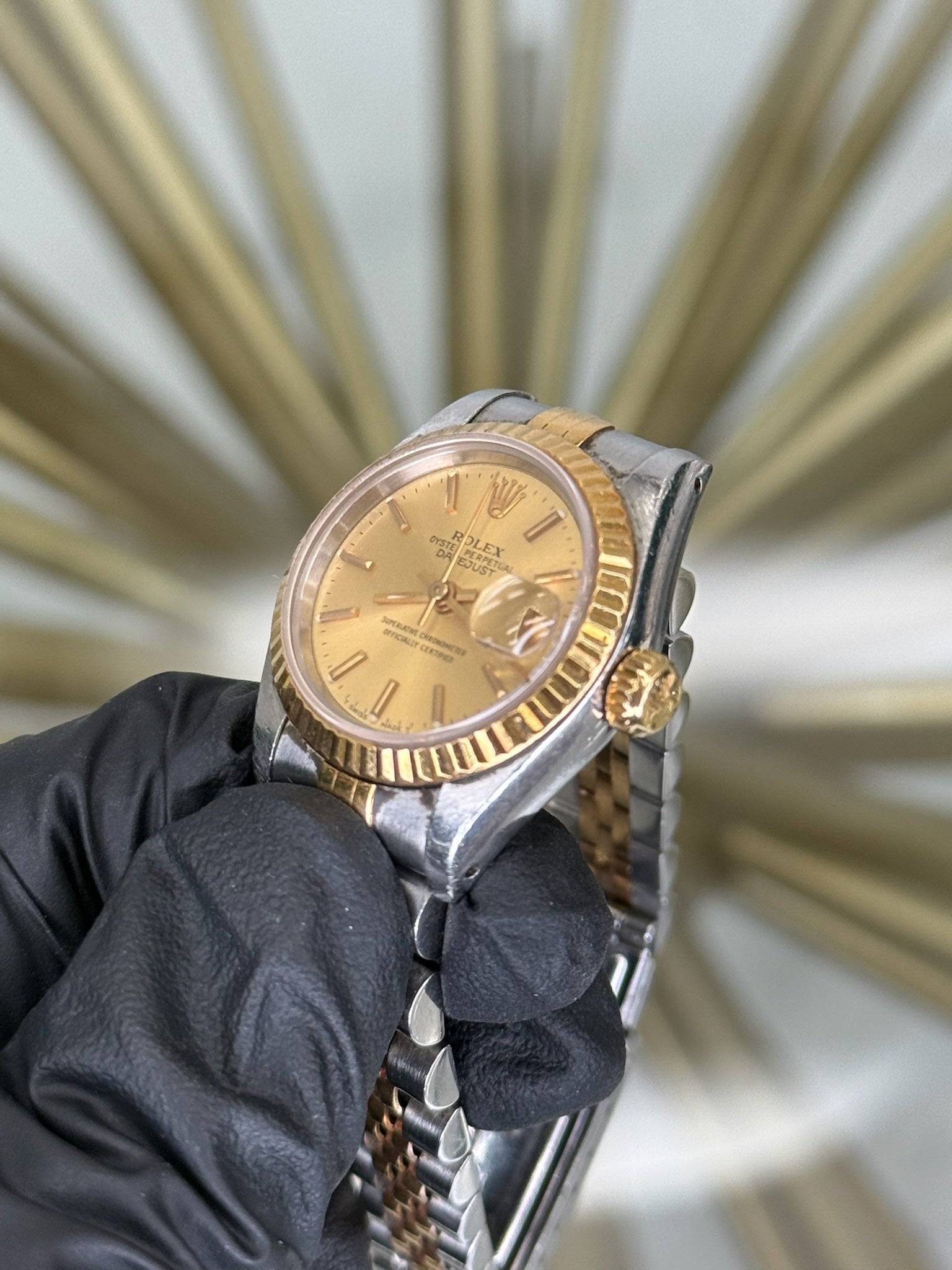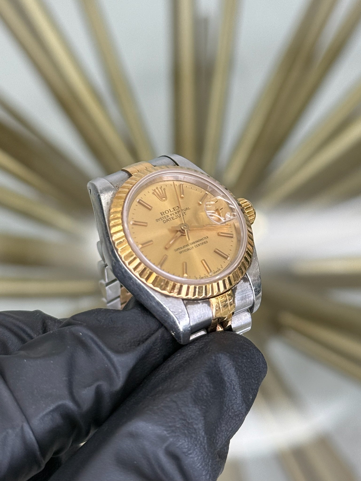 Rolex Datejust Champagne Stick Dial on Jubilee 69173