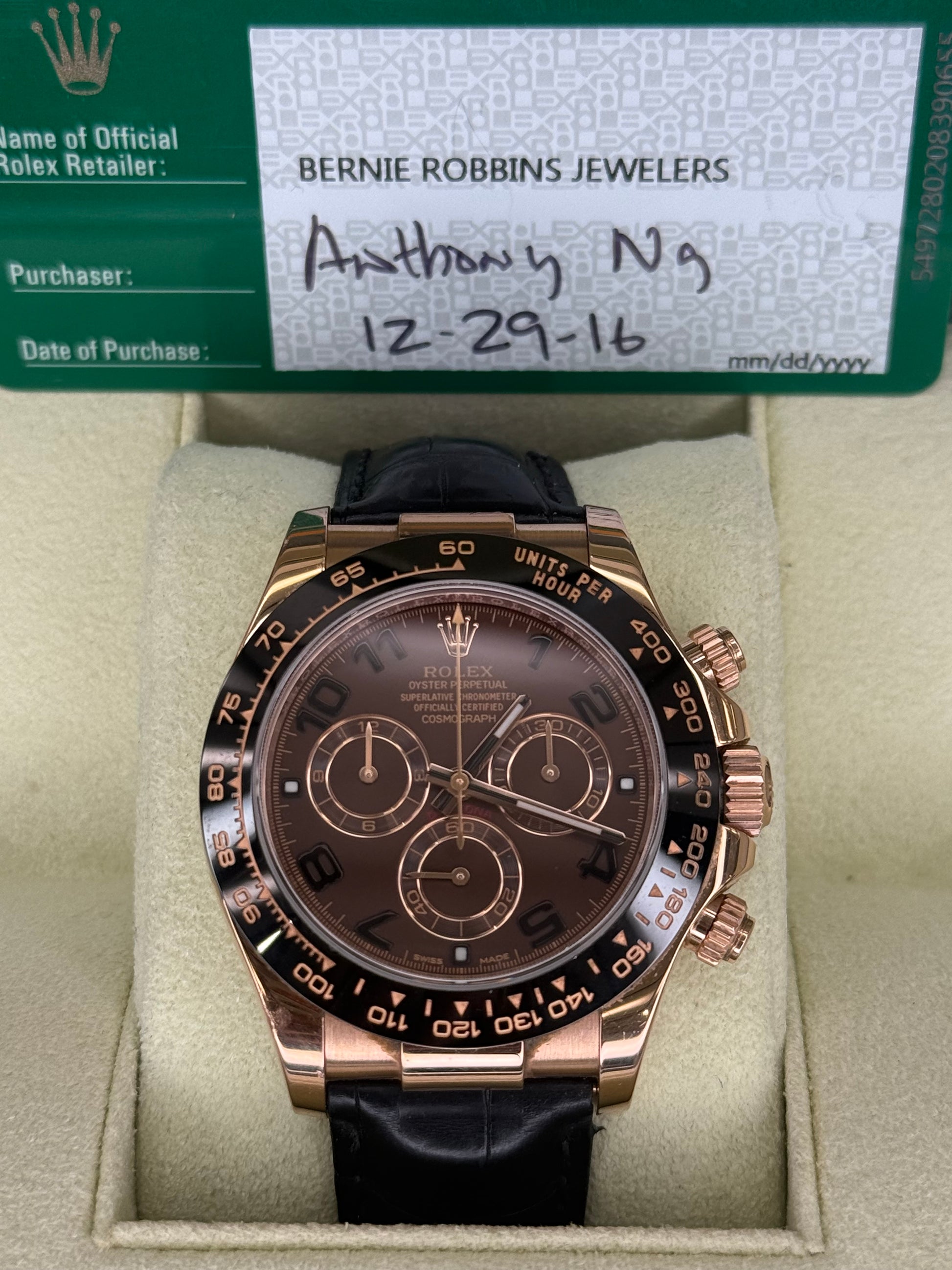 Rolex Daytona Chocolate Arabic Dial on Oysterflex 116515LN 2016 Complete