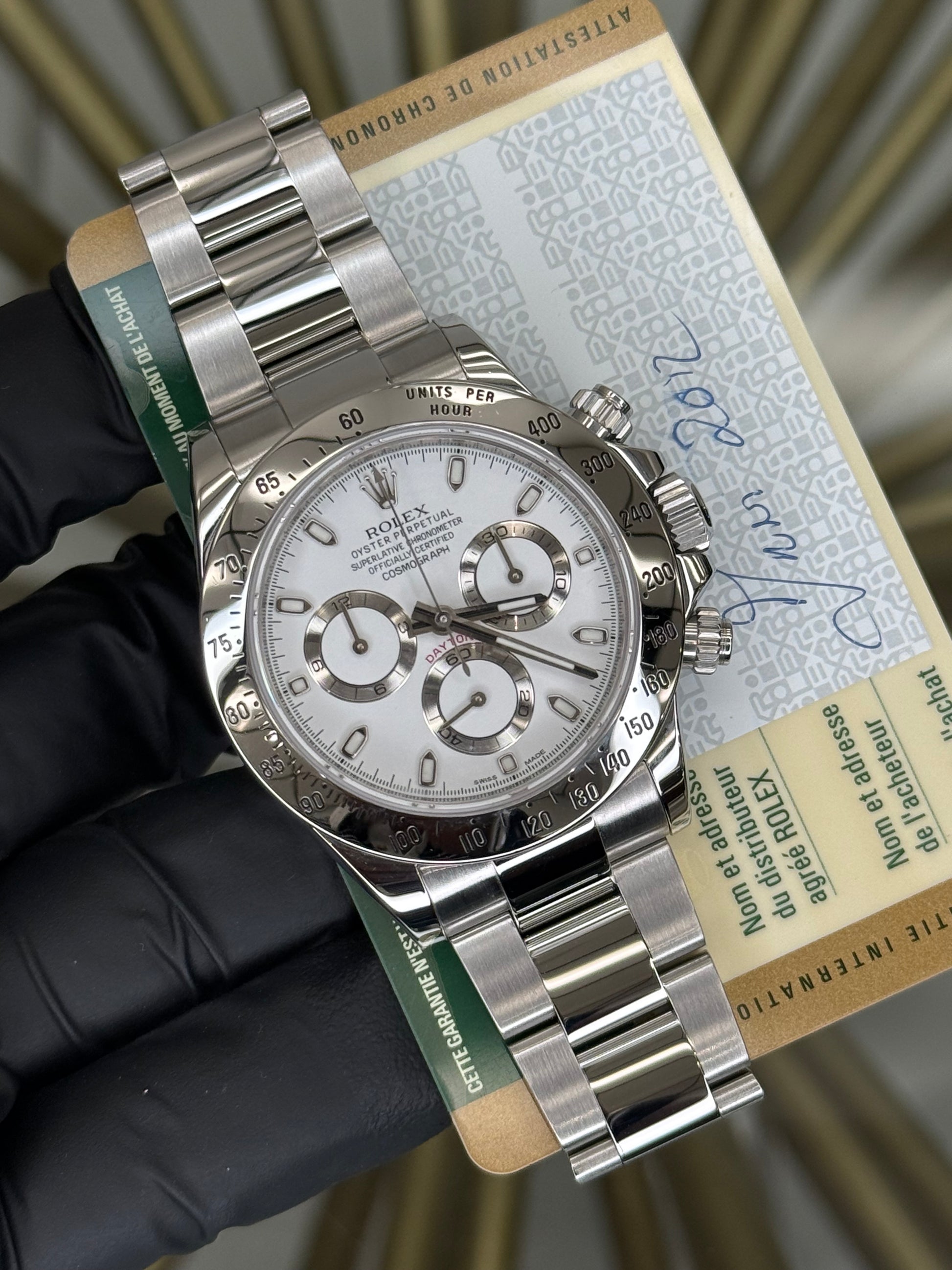 Rolex Daytona White "APH" Dial on Oyster 116520 2012 Card