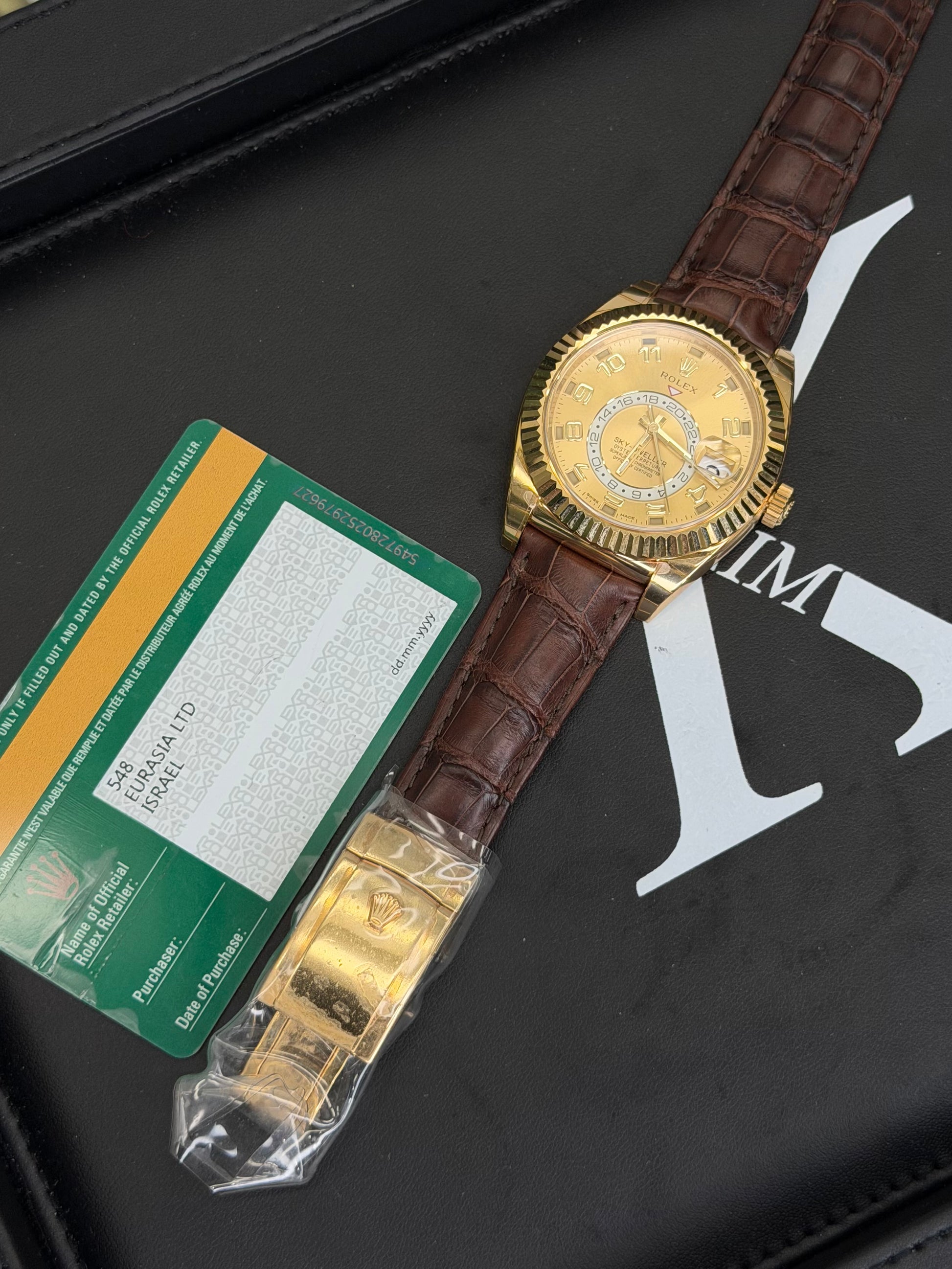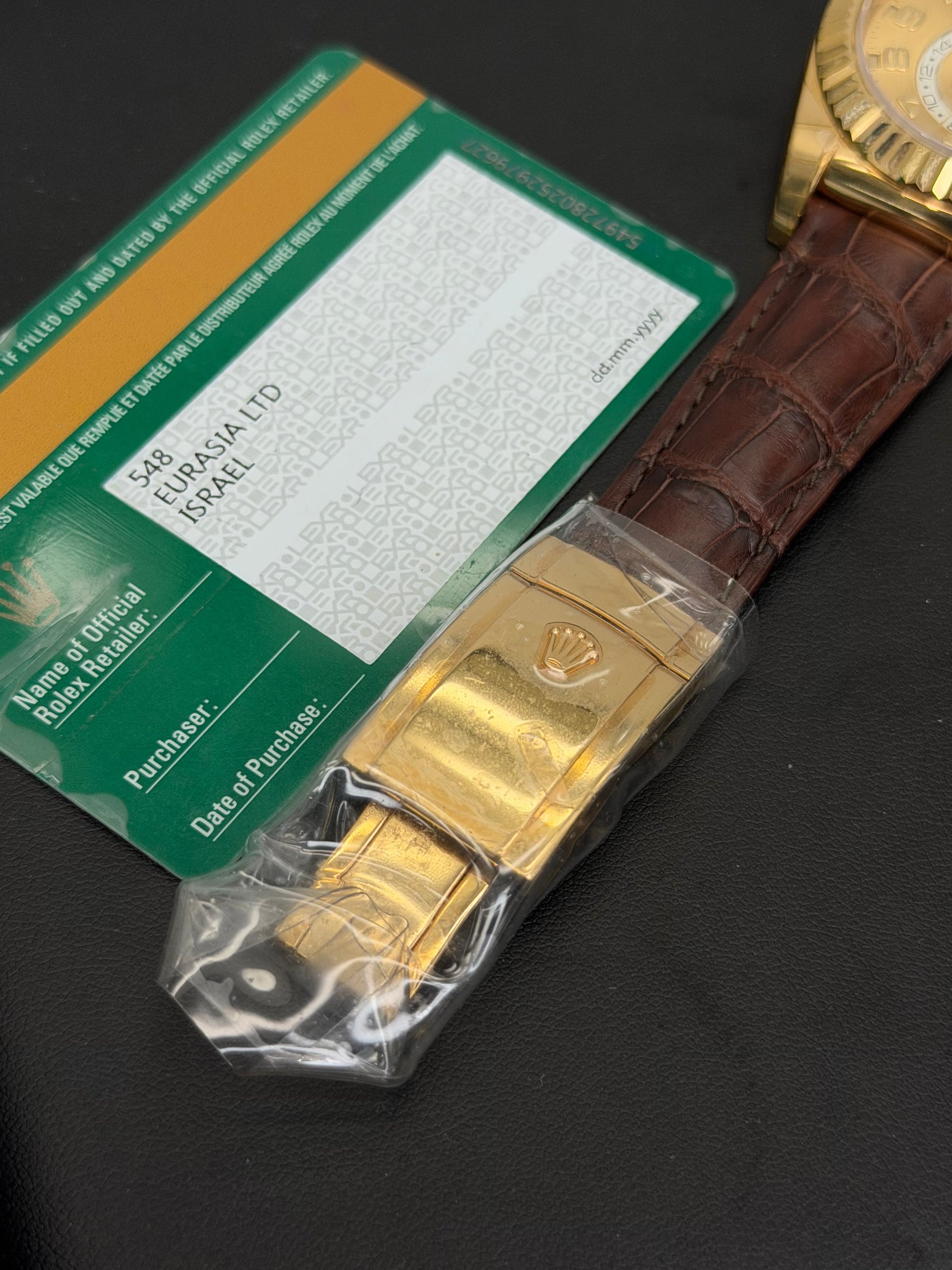 Rolex SkyDweller Champagne Arabic Dial on Leather 326138 Open Date Card